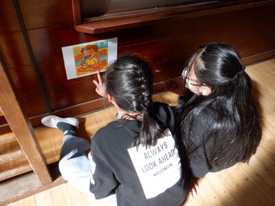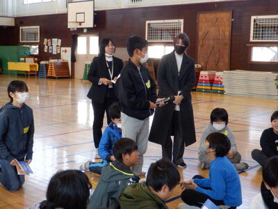 6年生は、「ヒントを手掛かりにトレジャーハンティング」をしました。3ヒントクイズでリスニング力、理解力が試されたり、カードから情報を読み取り、ネイティブの先生に伝えたりと、高度な英語力が必要となるプログラムでしたがみんなよく取り組めていました。楽しかった!!と英語を使う楽しさを感じられている子もたくさんいました。