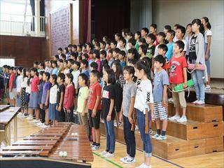 合唱「ハローシャイニングブルー」、合奏「茶色の小びん」を演奏しました。
