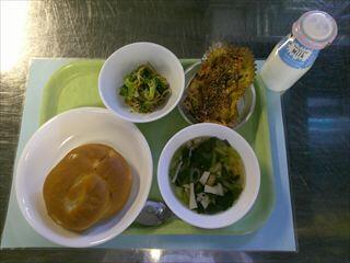 パインパン、さつまいものグラタン、ブロッコリーともやしのごま醤油、エリンギのスープ、牛乳
