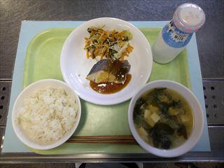 麦ご飯、白身魚の薬味あんかけ、野菜ののり和え、みそ汁、牛乳