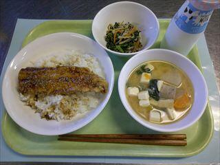 さんまのかば焼き丼、ごま和え、呉汁、牛乳