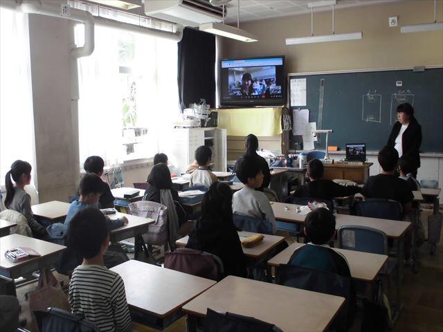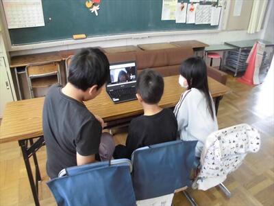 3年生は、社会科の学習の一環として、潤徳小学校の3年生とオンラインで交流しました。