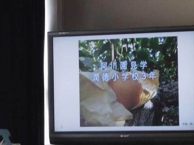 今回は、潤徳小学校の3年生が社会科の学習で地域にある梨園を見学し、学んだことをスライドにまとめて発表してくれました。⇒潤徳小学校での様子はこちら