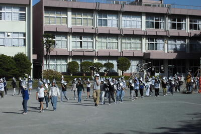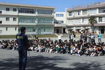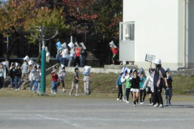 本日の3校時に、地震発生から給食室からの火災に至る複合災害を想定した避難訓練を実施しました。