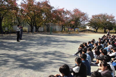 訓練では、緊急地震速報の放送後、放送機器が使用不可という、実際の災害に近い状況を設定しましたが、子供たちは「おかしも」の約束を守り、先生の指示や自分で判断しながら、緊張感をもって真剣に校庭への避難に取り組みました。