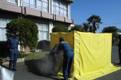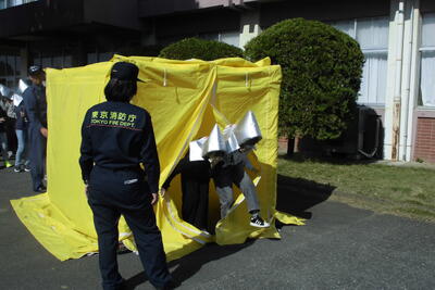 また、5・6年生は火災時に最も危険な要素の一つである「煙」の怖さを実感する煙体験を行い、「真っ白で前が全く見えなかった」という感想があったように、煙の中での正しい避難方法の重要性を身をもって学びました。