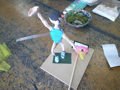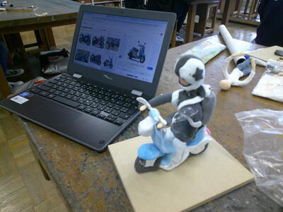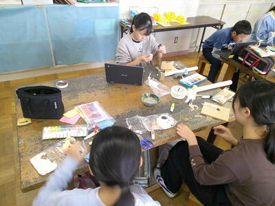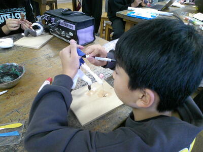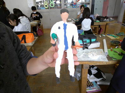 6年生は、針金や紙粘土、身近な材料を使って10年後・20年後の自分を想像して作品を制作しています。