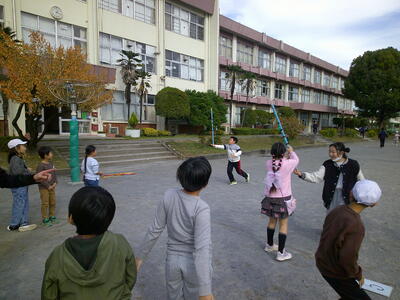 6年生は、遊びの説明の際に5年生と一緒に実演をするなど、積極的に下級生と関わり、活躍の場をつくっている様子でした。