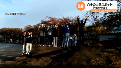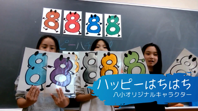 動画では、本校の子供たちに人気のスポットである「ビオトープ」や「つきやま」が紹介され、昨年度誕生したばかりの日野八小オリジナルキャラクター「ハッピーはちはち」も登場し、子供たちは改めて自分たちの学校の魅力に気付き、大いに盛り上がりました。