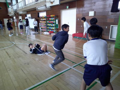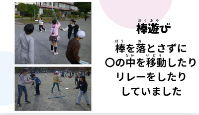 恵まれた天候の中、子供たちは思いきり体を動かして遊びました。活動では、たくさんの遊びの工夫や、異学年交流する姿が見られました。