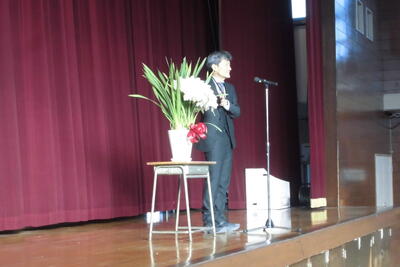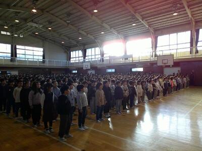 全校で校歌を斉唱した後には、生活指導の先生から冬休みの過ごし方について、4つの大切な話がありました。