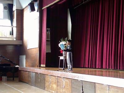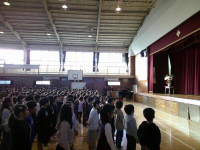 式の最後には、2学期の終業式同様、体育館に響き渡る大きな声で校歌を斉唱しました。