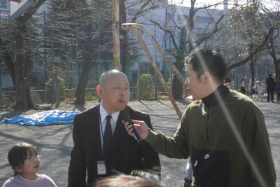 今回は「潤八なかよし大作戦」で交流している潤徳小学校の校長先生も参加してくださり、子供たちの遊びの輪に加わったり、インタビューに答えていただいたりして、交流を深めることができました。