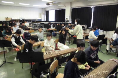 4年生 音楽「箏の演奏にトライ!」