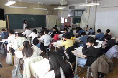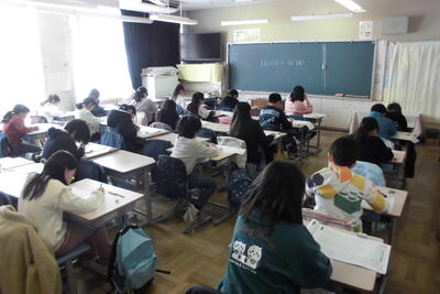 開始直前の教室では、参考書を手に最後まで粘り強く確認する姿が見られ、試験が始まると、どの子も一文字一文字に想いを込め、最後まで高い集中力で問題に向き合っていました。