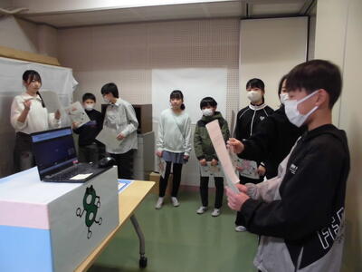 子供たちは協力して練習を重ね、本番では「問題です!てーれんっ!」と自作の効果音を交えるなど、クイズ形式で明るく楽しく落川交流センターの魅力を伝えていました。