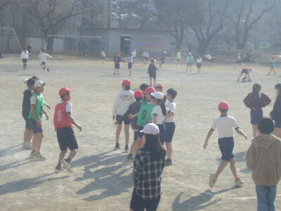 卒業を前に、6年生が校庭で「学年お別れレク」を行いました。