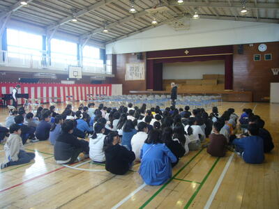 本格的な演出に、子供たちは一瞬で物語の世界へ引き込まれ、静まり返った体育館には心地よい感動が広がっていました。