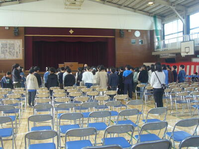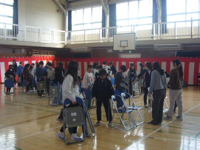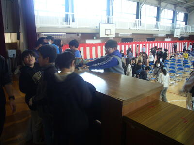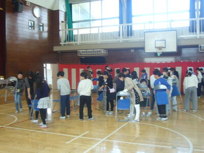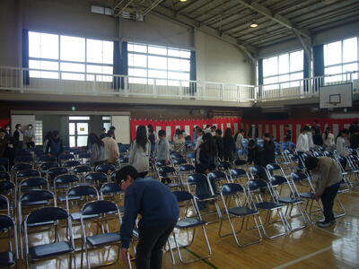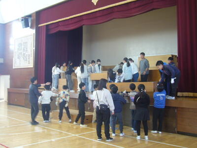 本日の6校時、5年生が卒業式の会場設営を行いました。