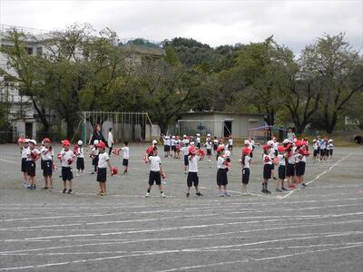 朝会では、体操をして綺麗な空気を大きく吸って、目を覚まします。
