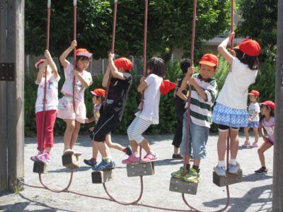 9月の避難訓練では、消防団の方による放水訓練を行います。