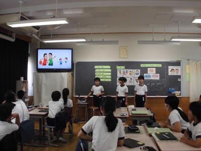 5年生は1学期の外国語で、「自分のことを友達に紹介する」活動を行いました。