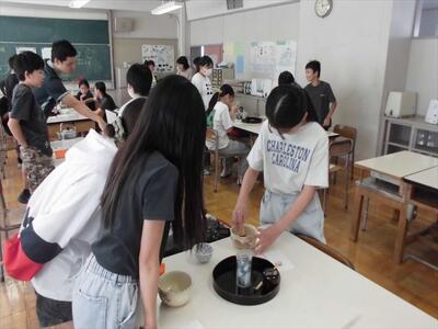 6年生の社会科では、室町文化に焦点を当て、その代表である茶道を体験しました。