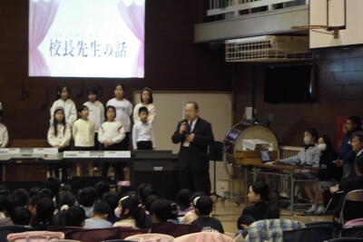 開会に際し、校長先生からは、今年度の子供たちと教職員の共通目標である「やってみよう・やりとげよう―レッツ・トライ―」の精神を、今回の学習発表会で存分に発揮してほしいという熱いメッセージが贈られました。