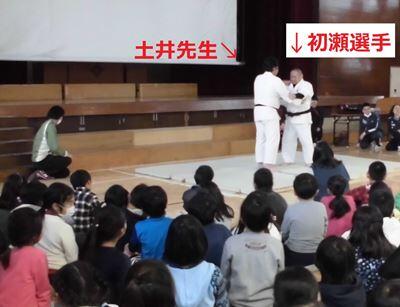 (八小の先生が初瀬選手と試合をさせていただきました。)