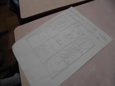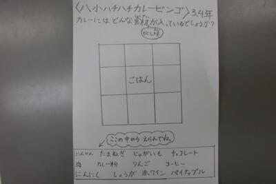 集会委員の子供たちがみんなで相談しながら「これは隠し味かな?」「いや、こっちの方がコクが出そう!」とグループで楽しく考えながら準備を進め、事前に各学級にビンゴシートを届けてくれました。