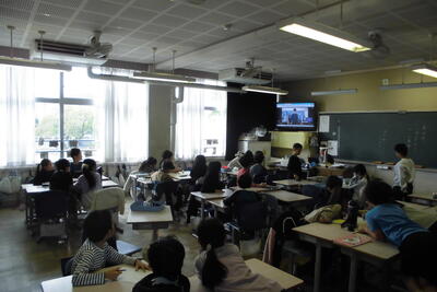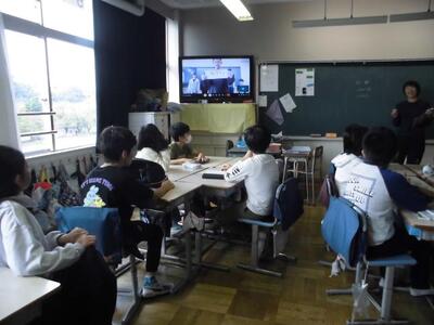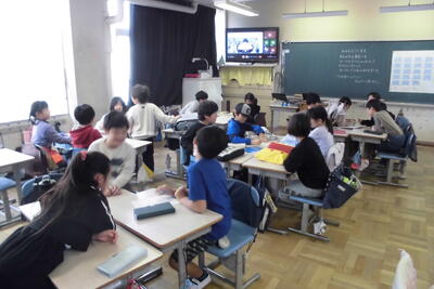 3年生は、社会科の学習の一環として、潤徳小学校の3年生とオンラインで交流しました。