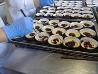 ※今日10月10日は数字を横にすると眉と目に見えることから「目の愛護デー」です。そこで、目にいいアントシアニンを多く含むブルーベリーを入れたカップケーキを作りました。ケーキの生地をカップに注いだあと、砂糖で煮ておいたブルーベリーをスプーン1杯ほどいれてお箸でひと混ぜしてマーブル状にしました。