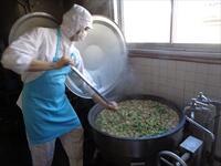 ※今日は、旬の里芋を使った山形県の郷土料理「芋煮」です。山形県では、毎年秋になるとあちこちの河原などで、大きな鍋で作った芋煮を大勢で食べる「芋煮会」をするそうです。給食室でもおおきな釜で煮込んだので、とてもおいしく出来上がりました。先生方には大好評でしたが、地味な煮物のせいか学年が低くなるほどおかわりをして食べる子は少なかったです。残念・・・。