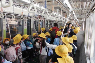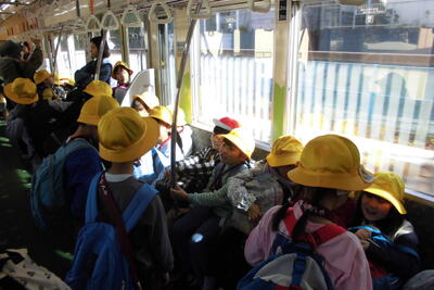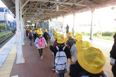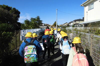 学校から高幡不動駅まで、みんなで交通ルールを守りながら歩いて移動しました。