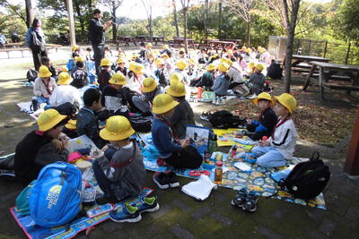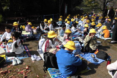 たくさん歩いて動物を観察した後は、みんなで楽しくお弁当の時間。