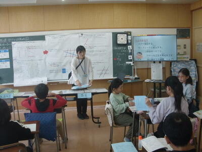 4年生では、算数科少人数「垂直、平行と四角形」の学習に取り組みました。