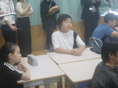 平山中学校での授業や部活の様子を実際に見学したり、行事等について食堂で説明を聞いたりしました。