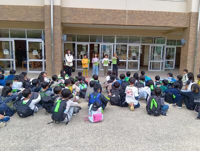 本日の午前中に、1年生が近隣幼稚園・保育園3園との交流を実施しました。