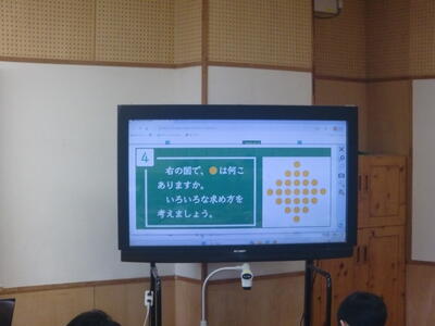 ドットの並び方やまとまりに着目し、ドットの数の求め方を多様に考え、1つの式に表しました。自分の考えを友達に伝え、対話をしながら活動をすすめました。