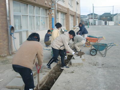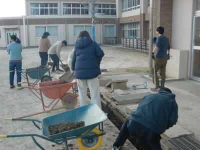 午後には学校運営協議会主催の校庭側溝掘りを実施しました。