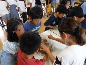 水道キャラバンでは、自分たちのくらしと深く関わりのある水をきれいにする工夫や努力について、東京都水道局の方をゲストティーチャーとして教えていただきました。浄水場で汚れを沈める「沈殿池」と同じ働きを実験を通して体験するなど楽しく学習できました。