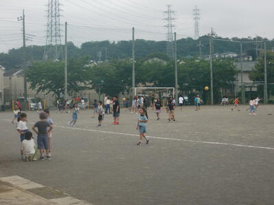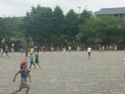 今日の昼休みの様子です。梅雨の中休みということで校庭で遊ぶことができました。