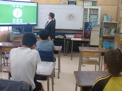 わかくさ1組では、算数「どうぶつの位置の表し方」の学習に取り組みました。横1列や縦1列に並んだ動物の絵を見て、上、下、左、右から何番目と表すことを学びました。学習者用端末で問題にも取り組みました。