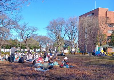 3年生は市役所や消防署見学後に、中央公園でお弁当をいただきました。