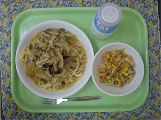 牛乳 きのこのスープスパゲッティ スタミナサラダ