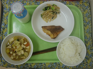 牛乳 ごはん 赤魚の照り焼き 青菜とツナの和え物 さつま汁