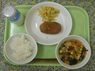 牛乳 ごはん きんぴらコロッケ 白菜のゆす和え 和風わかめスープ