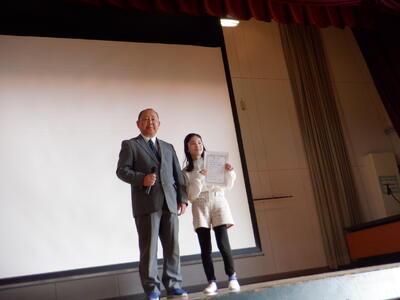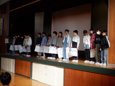 市の令和7年度「ごみゼロ大作戦!!!ごみ減量ポスター」で入選した児童の表彰です。
