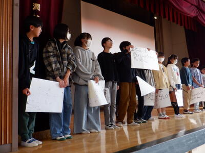 展覧会の話に加え、「子供たちがつくる学校プロジェクト」の3本柱、「潤八なかよし大作戦」の取組が始まっていること、「MJリターンズ!」のパートナーである明星大学学友会吹奏楽団が「第73回全日本吹奏楽コンクール」で銀賞を受賞したこと、「潤フェス×クリスマス」の出場者募集が今週末までであることに触れ、全員で「子供たちがつくる学校プロジェクト」を頑張っていこうと話しました。