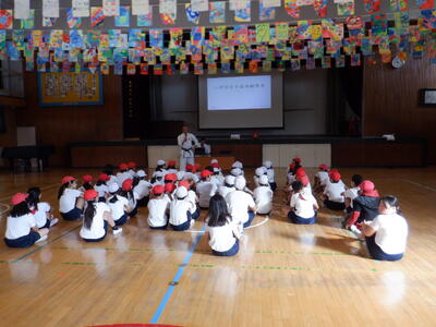 【子供たちがつくる学校プロジェクト】全校朝会(11月4日) 展覧会紹介編
